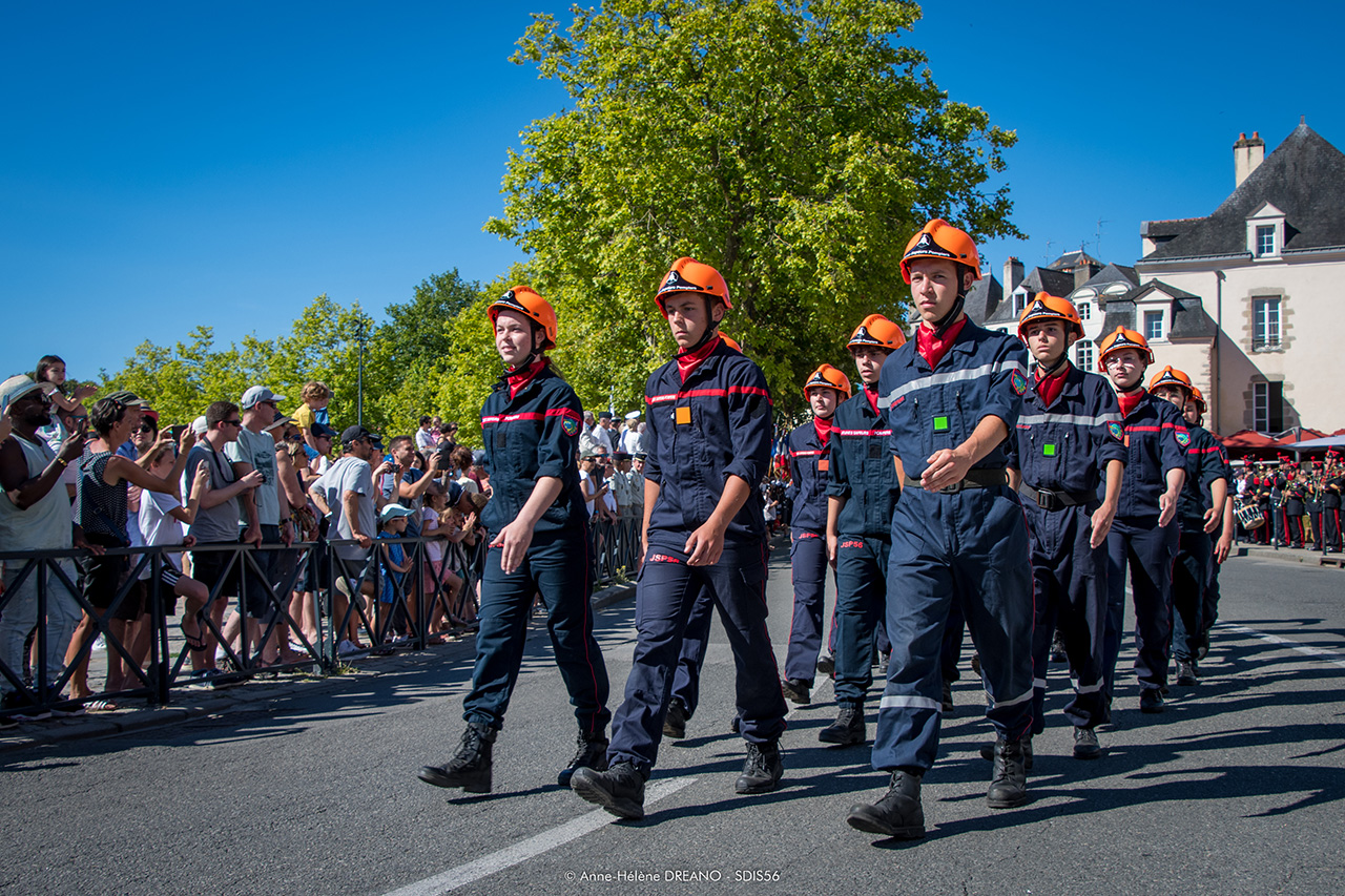 22 jeunes sapeurs-pompiers des sections de Grand-Champ, Guern, Locminé et Pontivy ont participé ce jeudi 14 juillet à la cérémonie sur l’esplanade du Port de Vannes, présidée par Guillaume Quenet, secrétaire général, Préfet du Morbihan par intérim. Ils ont défilé aux côtés d’un peloton de la gendarmerie nationale et du 3e RIMA. Le défilé à pied s’est clôturé par celui des engins du Centre d’Incendie et de Secours de Vannes et du véhicule poste de commandement de Grand-Champ.