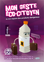 Le Conseil général du Morbihan vient de lancer sa nouvelle campagne de communication : « Mon geste éco-citoyen, je me sépare des produits dangereux », élaborée en partenariat avec le réseau départemental de prévention des déchets. L’objectif est d’encourager les Morbihannais à mieux trier les déchets dangereux et à réduire leur utilisation, notamment les produits dangereux utilisés pour le ménage, le bricolage, le jardinage.
