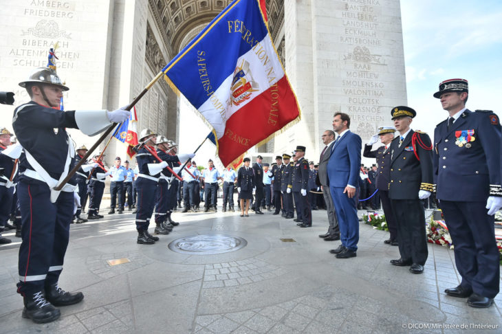 Le vendredi 14 juin, la cérémonie d’hommage national et le défilé des drapeaux des corps départementaux ont eu lieu sous l’arc de Triomphe à Paris.