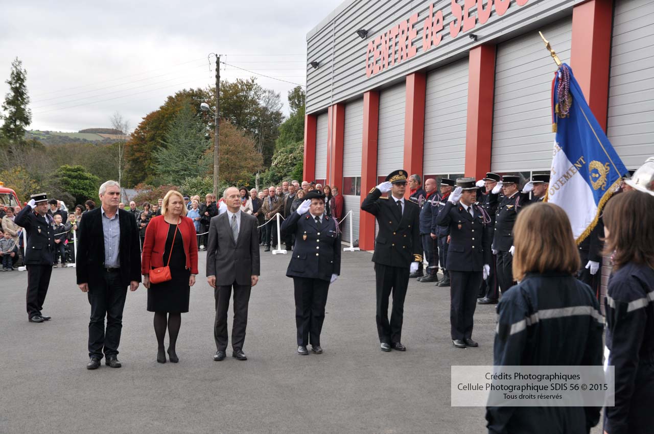 La cérémonie s’est déroulée sous la présidence de Romain Delmon, Directeur de cabinet de la Préfecture, et en présence de Christine Penhoët, 1ère Vice-présidente du Conseil d’Administration du SDIS, Christian Derrien, Conseiller départemental, David Le Solliec, Maire de Gourin et du colonel Cyrille Berrod, Directeur départemental du SDIS.