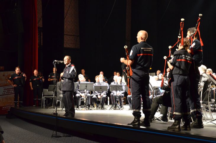 Créé en 2009, le Bagad des sapeurs-pompiers du Morbihan est composé de sapeurs-pompiers volontaires et professionnels. Les sonneurs et batteurs du bagad ont débuté la soirée avec 8 titres dont « Kas a barh » ou « On the road of passchendaele ». La deuxième partie du concert était dédiée à l’orchestre d’harmonie. Cette formation musicale créée en 2007, a montré un répertoire éclectique en passant de « la fille du régiment », à la bande originale d’ « Iron Man 3 ». Les 54 musiciens des deux ensembles musicaux (12 pour le bagad, 42 pour l’orchestre) ont terminé le concert à l’unisson avec 5 morceaux, comme par exemple « Entre terre et mer » et « Amazing Grace ».