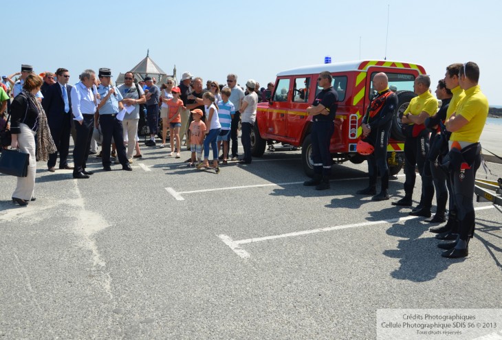 Pour la période estivale, le Service Départemental d’Incendie et de Secours du Morbihan met en place des dispositifs adaptés à l’afflux de population dans le département ainsi qu’aux risques particuliers liés à la saisonnalité. Une présentation des cinq dispositifs mis en œuvre pour les mois de juillet et août 2013 ont été présentés au Préfet du Morbihan, jeudi 11 juillet sur la plage de Penvins.