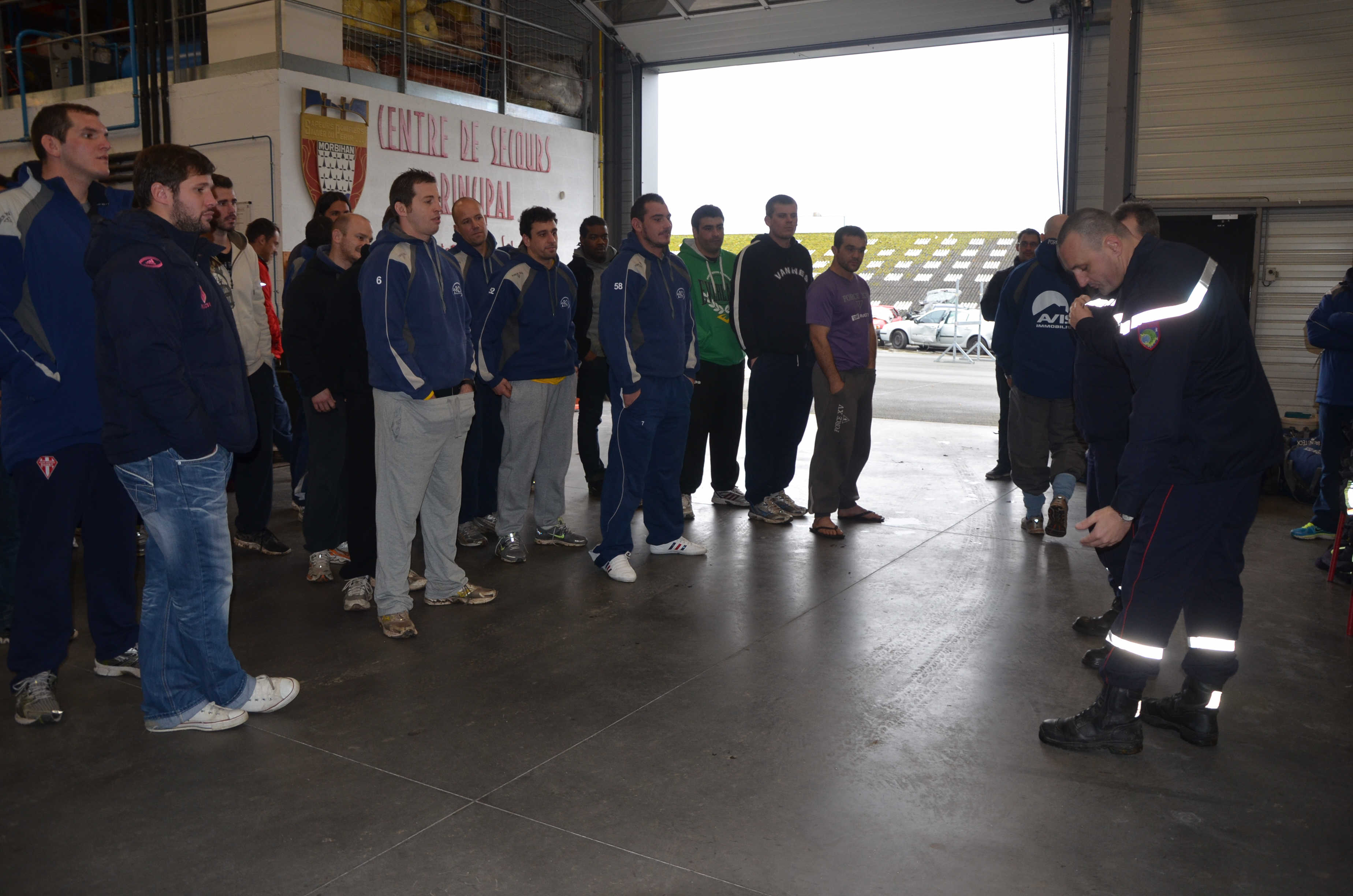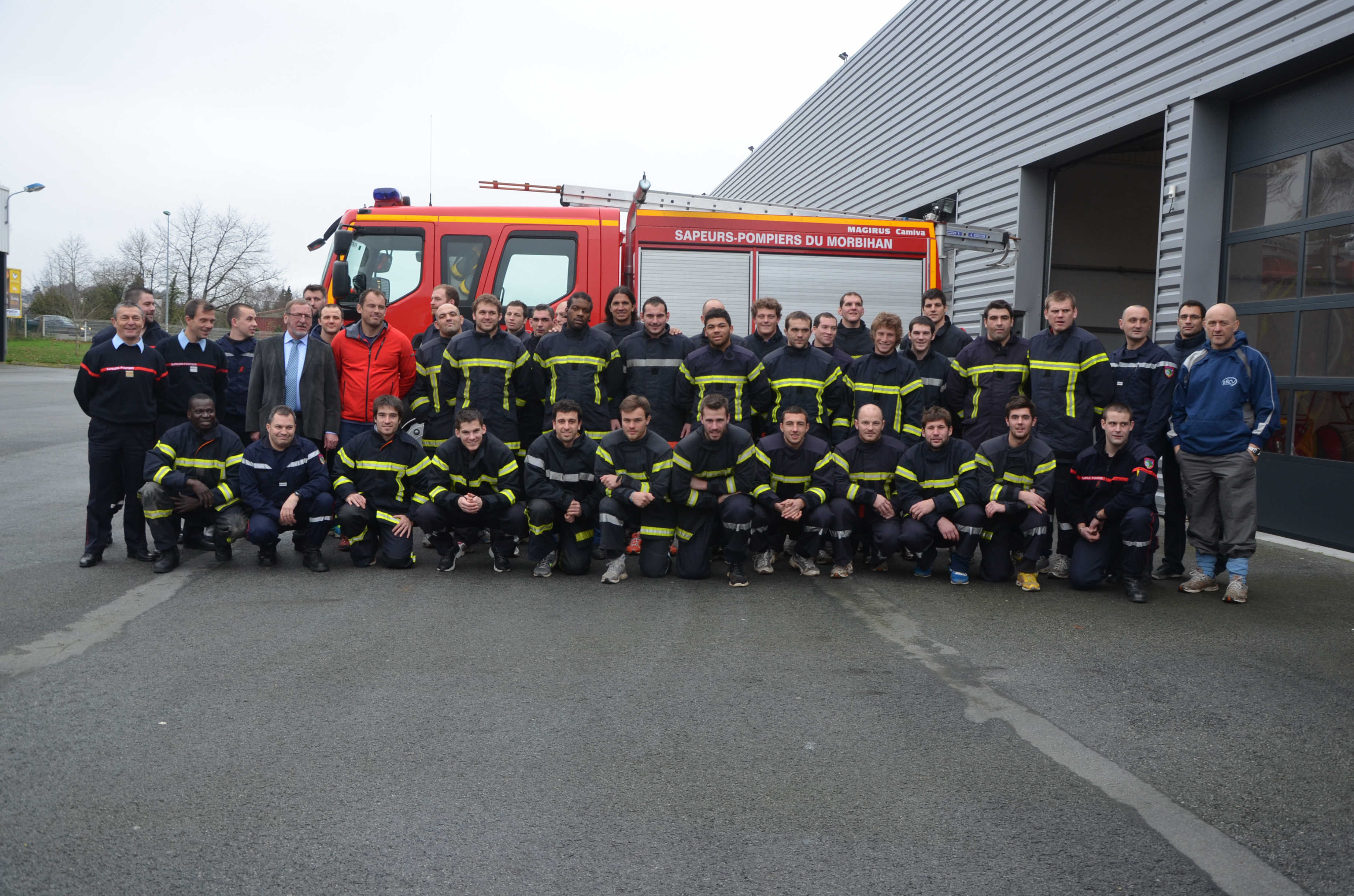 Samedi dernier, les joueurs du Rugby Club de Vannes ont participé à une journée d’initiation à l’entraînement sportif des sapeurs-pompiers au Centre de Secours Principal de Pontivy. Equipés des mêmes tenues que les sapeurs-pompiers, les rugbymen se sont essayés aux divers exercices que pratiquent régulièrement les soldats du feu.