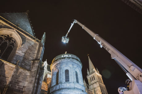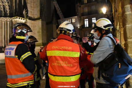 Un exercice de grande ampleur s’est déroulé le lundi 28 septembre. Le scénario consistait en la lutte contre un incendie situé dans la charpente de la Cathédrale Saint-Pierre de Vannes. Il a permis de mesurer les capacités d’intervention sur le bâtiment : assurer un débit d’ampleur, utiliser le plan ETARE, maitriser le positionnement autour de la Cathédrale. Cette manœuvre a également été l’occasion de mener des actions relatives à la préservation des œuvres.