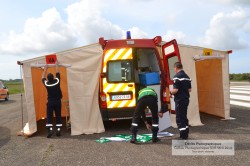 Parmi les objectifs propres au SDIS, on notera le test de la mise en application du dispositif ORSEC NOVI avec l’activation de la chaine PMA (Poste Médical Avancé) et le test des moyens informatisés de transmission de données via le réseau Antarès. Le colonel Cyrille BERROD s’est rendu sur les lieux, à l’aérogare. Il a pu constater la qualité du dispositif opérationnel sapeur-pompier déployé pour l’exercice.