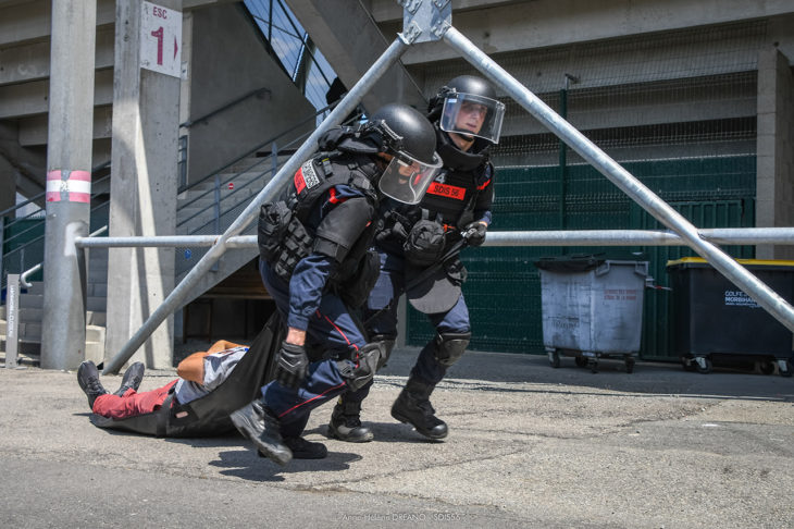 Le scénario prévoit l’intrusion d’individus armés d’une arme blanche et d’une arme à feu. Les agresseurs blessent plusieurs personnes au sein du stade. La mise en œuvre du dispositif ORSEC NoVi Attentat est sollicité au regard de la menace. Cet exercice permet de coordonner l’action de l’ensemble des services avec la neutralisation de la menace et la prise en charge des victimes dans les conditions les plus sécurisées possibles. Il s’agit pour les sapeurs-pompiers d’entrainer les équipes d’extraction, de mettre en œuvre le dénombrement et l’évacuation de victimes. Afin d’assurer la gestion opérationnelle, les structures de commandement PC de Colonne puis PC de site ont été activés.