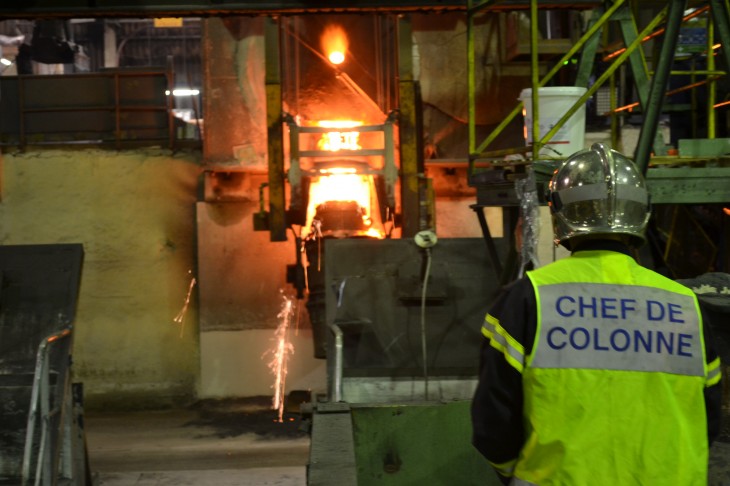Le four, d’une capacité initiale de 25 tonnes, est entré en fusion. Deux tonnes de métal qui y étaient contenues sont déversées sur le sol.