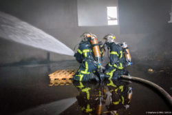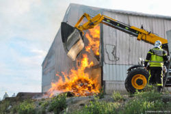 A l’arrivée des secours sur les lieux, le hangar, d’une surface d’environ 1 000m² était totalement embrasé. Le bâtiment est recouvert de panneaux photovoltaïques sur la moitié de sa toiture et contient près de 200 tonnes de fourrage. 3 lances à débit variable ont été établies pour maitriser l’incendie.