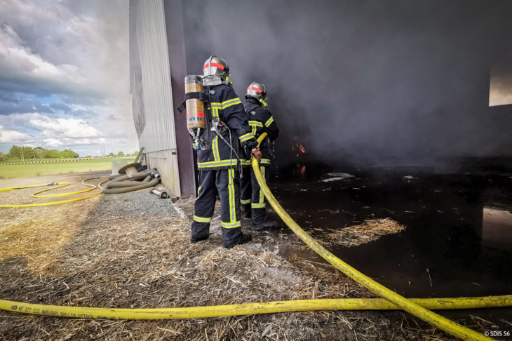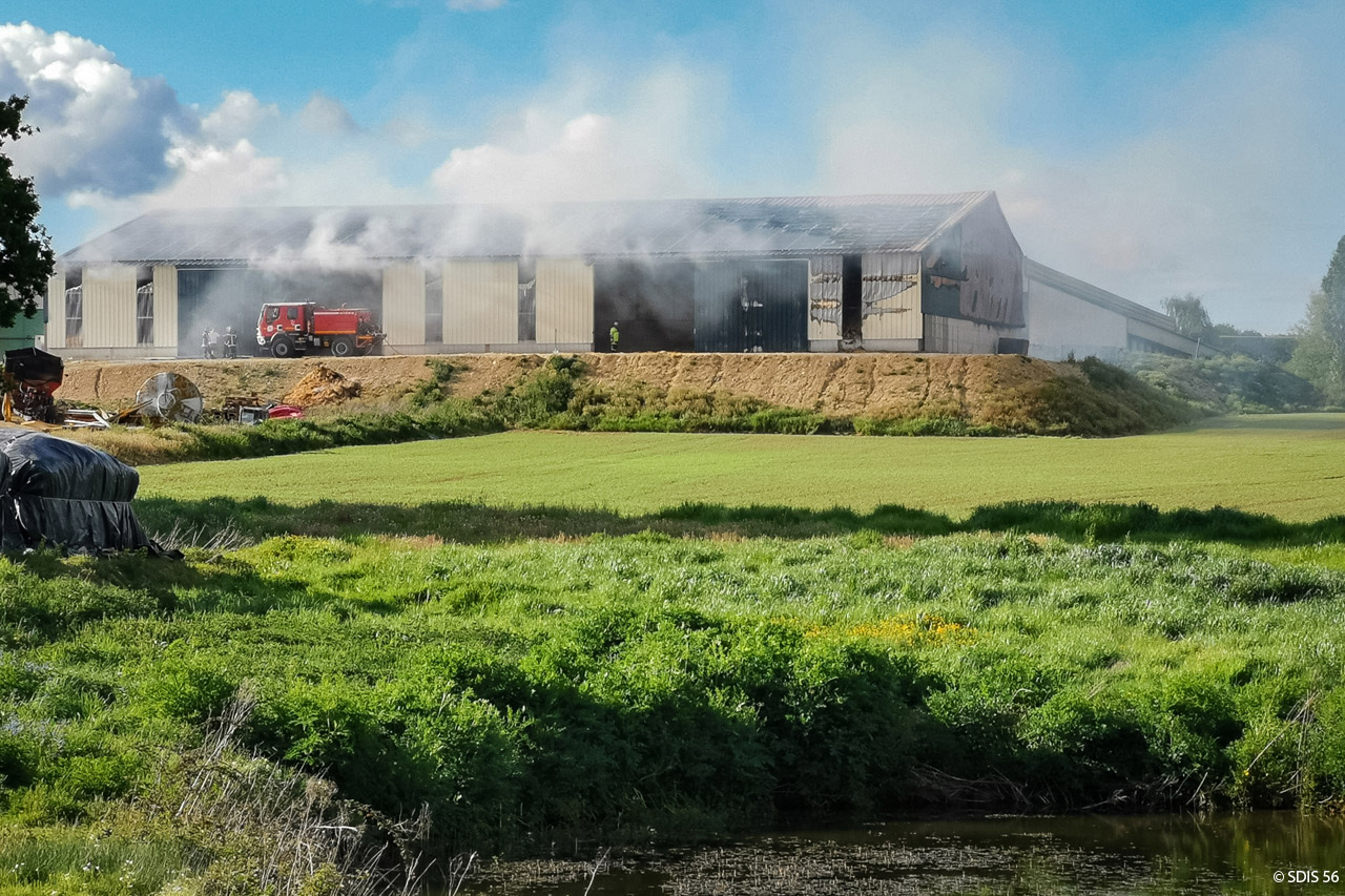 Samedi 18 avril après-midi, les sapeurs-pompiers du Morbihan et de l’Ille-et-Vilaine ont été alertés pour éteindre le feu dans un bâtiment agricole sur la commune de Guer.