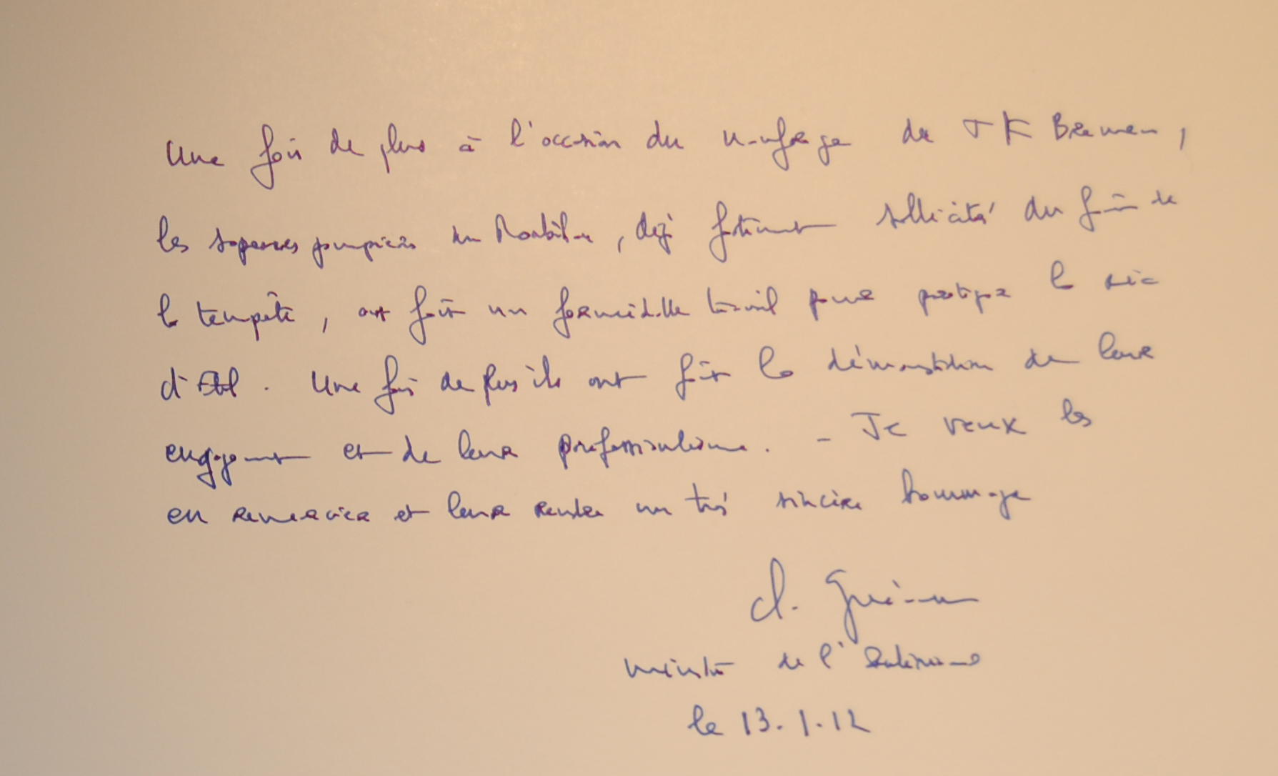 Le centre opérationnel du service départemental d’incendie et de secours de Vannes a reçu vendredi 13 janvier dernier la visite de Monsieur Claude Guéant, Ministre de l’Intérieur, de l’Outre-Mer, des collectivités locales, et de l’immigration, venu saluer les gendarmes et les sapeurs-pompiers du Morbihan, pour leur action lors du naufrage du Tk Bremen.
