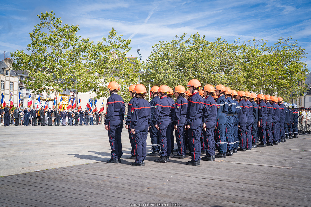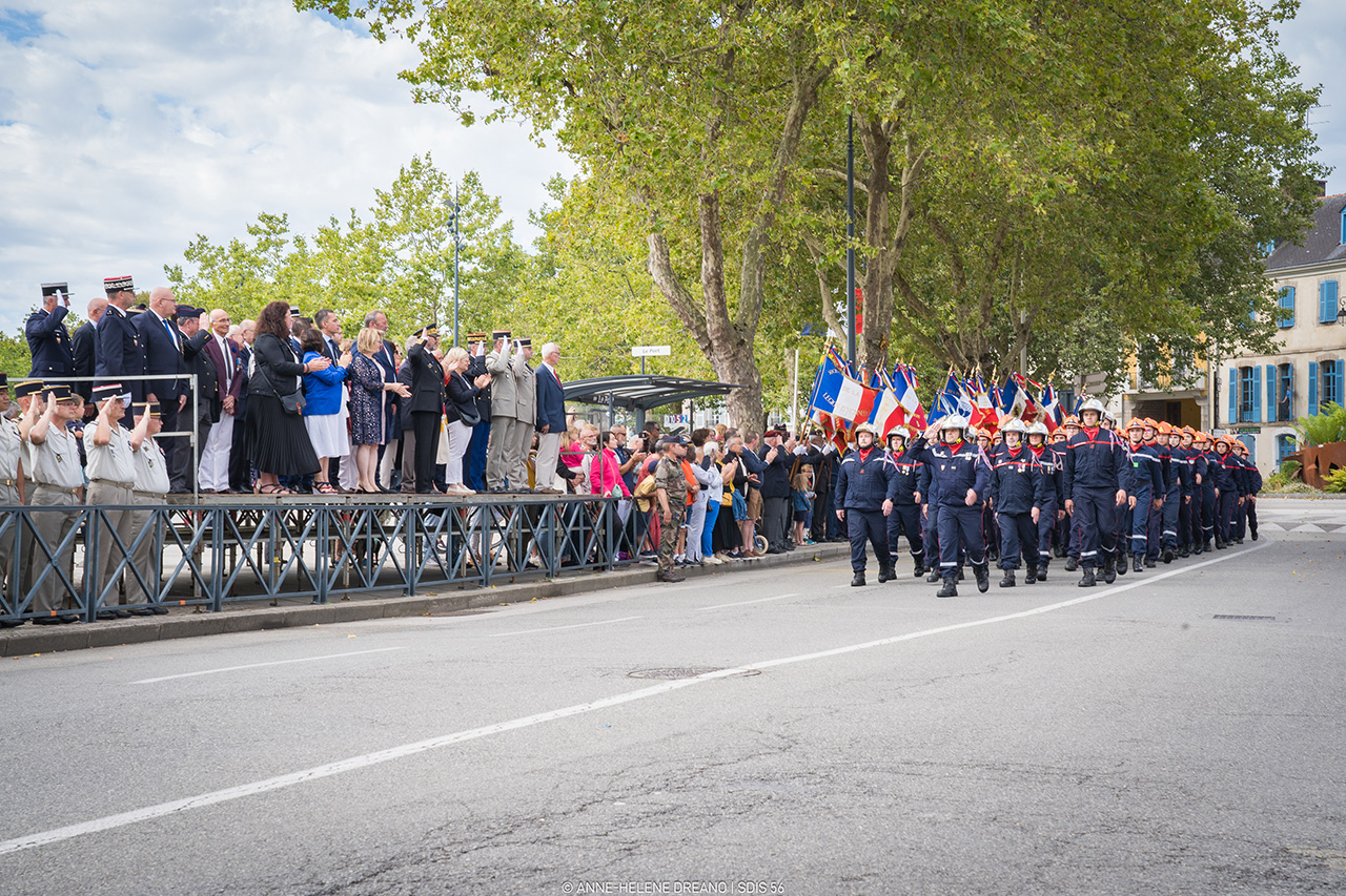 Depuis plusieurs années, le corps départemental des sapeurs-pompiers du Morbihan participe à la cérémonie donnée à l’occasion de la Fête Nationale. Nos jeunes sapeurs-pompiers et leurs encadrants représentent le SDIS à la commémoration et au défilé, sous l’égide du 3e RIMA, sur l’esplanade du Port.