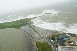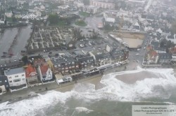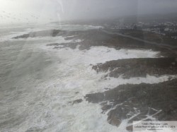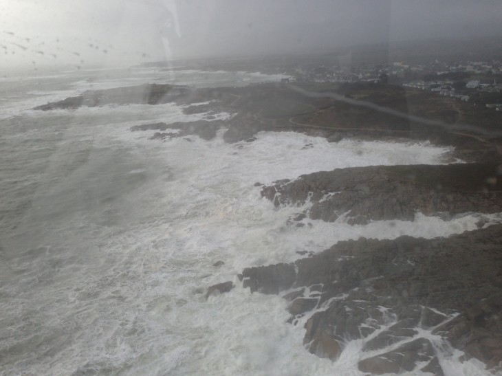 Une reconnaissance aérienne du littoral, sous un vent soutenu (55 noeuds), avec Dragon 56 a pu être effectuée à marée haute pour estimer les éventuelles difficultés liées au fort coefficient de marée (108).