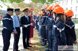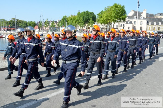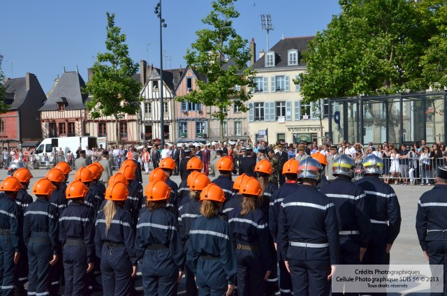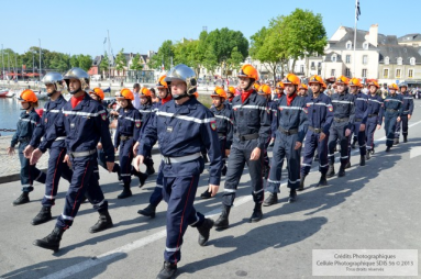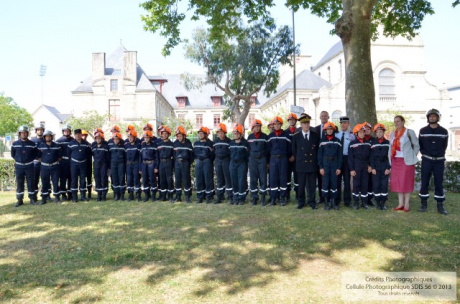 A l’occasion de la cérémonie patriotique du 14 juillet, les Jeunes Sapeurs-Pompiers du Groupement Territorial de Vannes (sections de Guer, Vannes-Grand-Champ,Muzillac et Ploermel) ont participé au défilé sur l’Esplanade du Port au son de la musique de Batterie Fanfare des sapeurs-pompiers, et suivis par des véhicules du Centre de Secours de Vannes. A l’issue de cette cérémonie, Jean-François Savy, préfet du Morbihan, leur a remis un témoignage de satisfaction en présence de David Myard, Directeur de Cabinet, de Françoise Favreau, Inspectrice d’Académie, de David Robo, Maire de Vannes et du colonel Cyrille Berrod, directeur départemental.