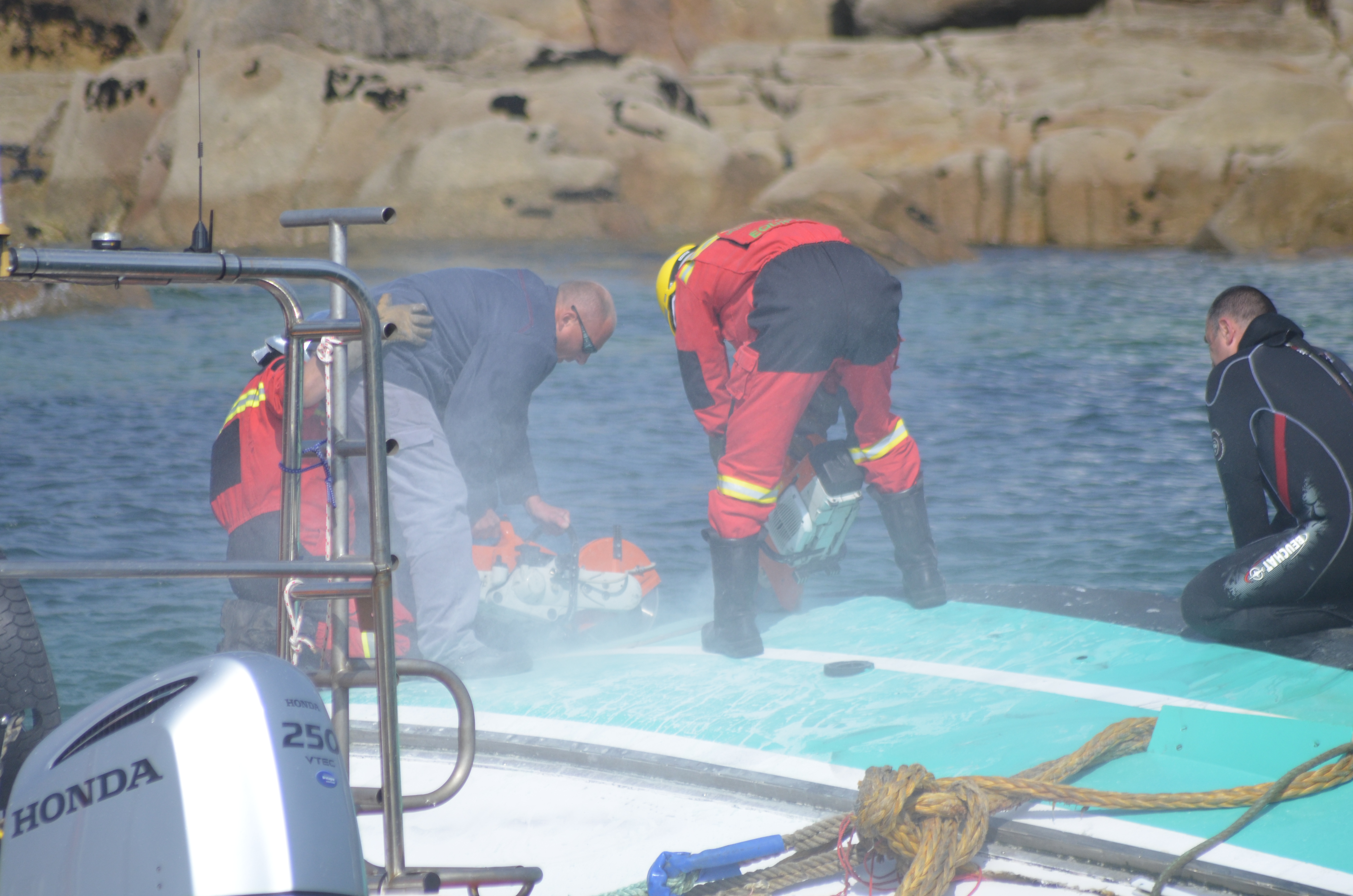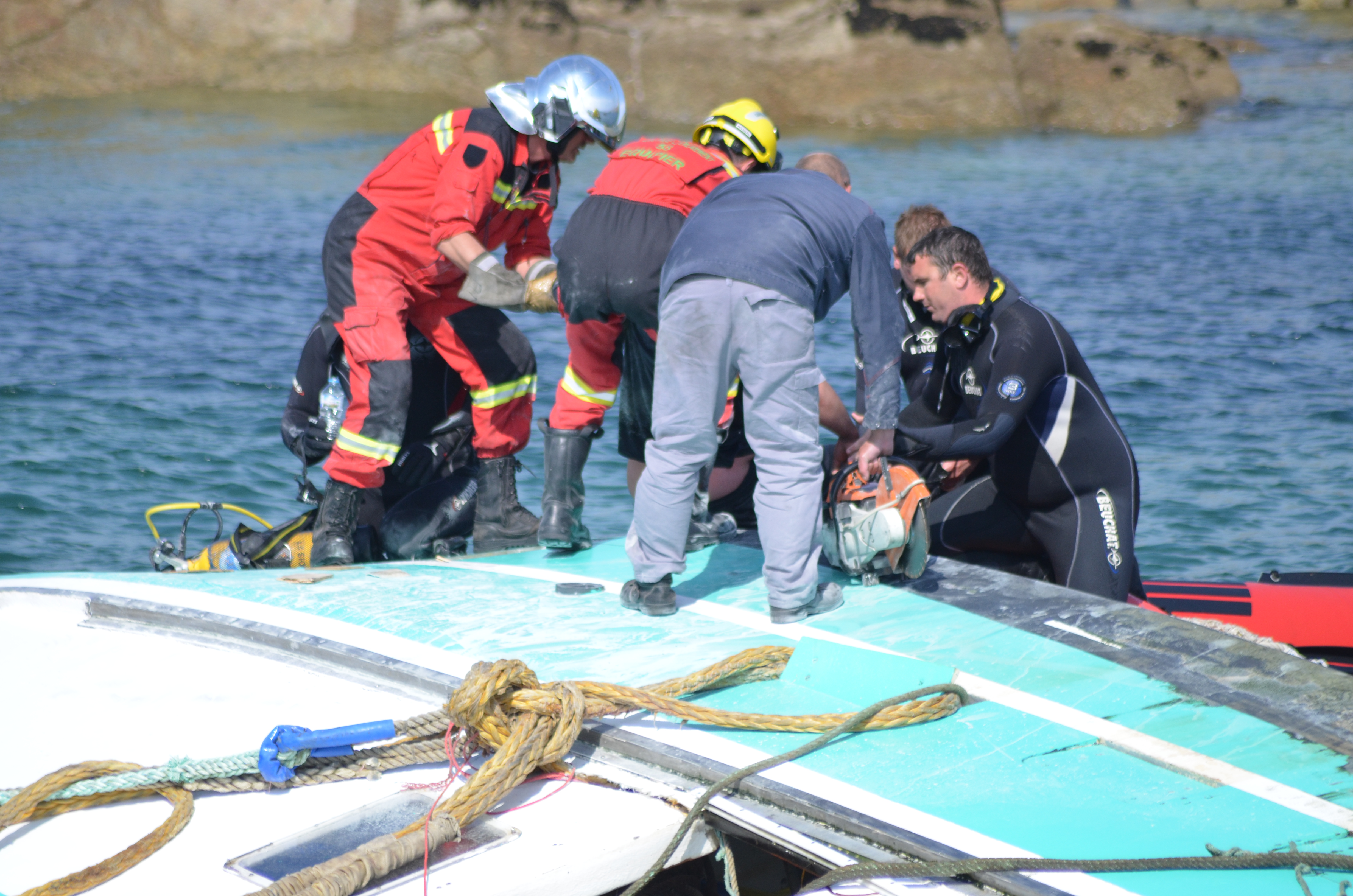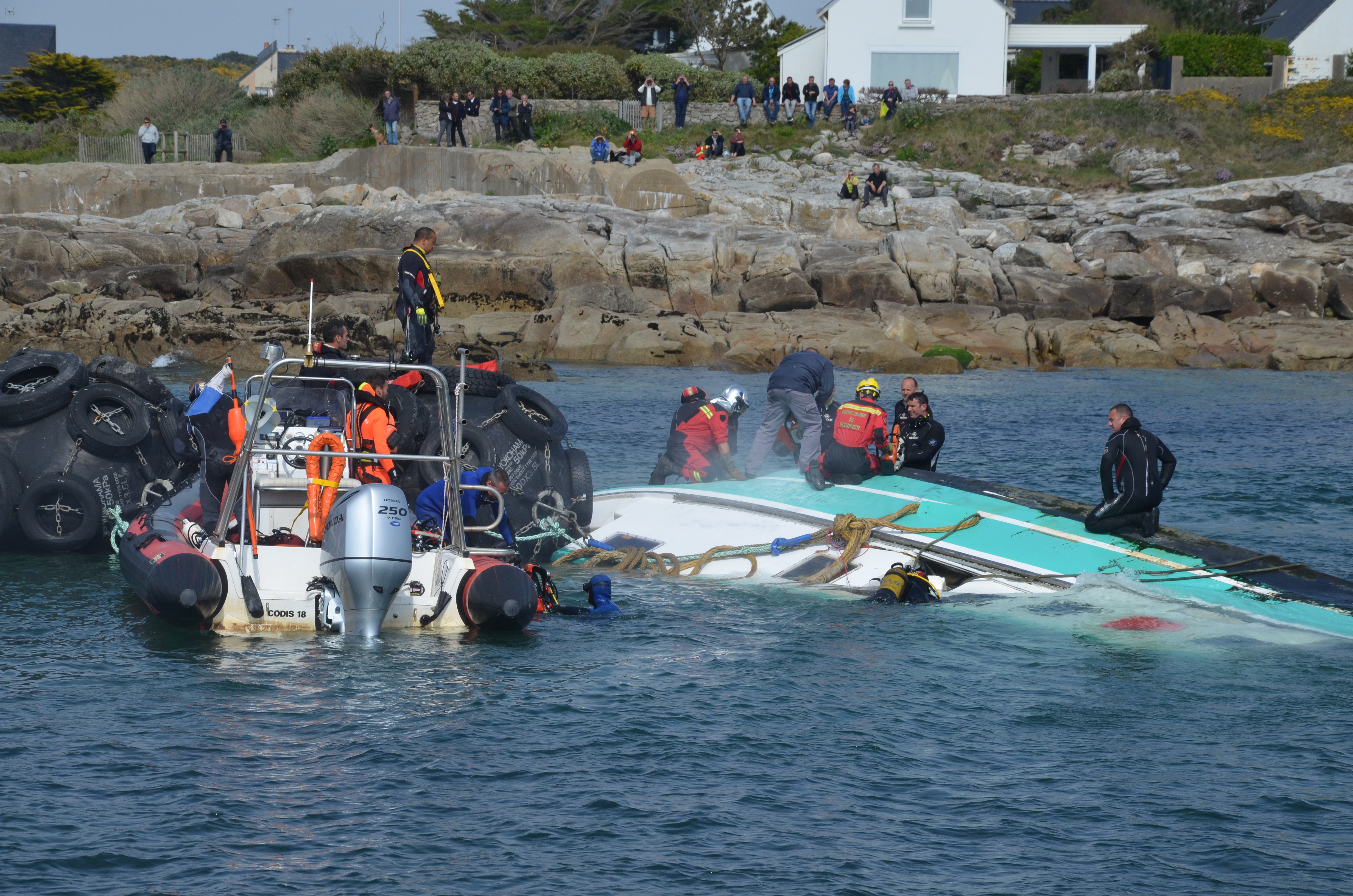 A leur arrivée sur les lieux, à « Les Coureaux », les sapeurs-pompiers découvrent 3 personnes réfugiées sur la coque. Elles ont été hélitreuillées. Les victimes ont ensuite été transportées jusqu’à l’hélistation pour être prises en charge par des VSAV. Après remorquage, jusqu’à la plage du Courégant, à Ploemeur, une quatrième victime, piégée à l’intérieur de l’embarcation, a été extraite après découpage de la coque.