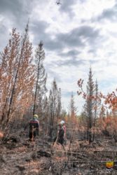 Après les premières missions de reconnaissance, les équipes sont projetées sur le terrain. « Prêts à attaquer les méga-feux et se confronter à des fronts de flammes, nous n’en avons pratiquement pas vu » sourit Nicolas « pendant 3 semaines, notre mission à consister à traiter toutes les fumerolles et noyer les souches et les racines incandescentes. »