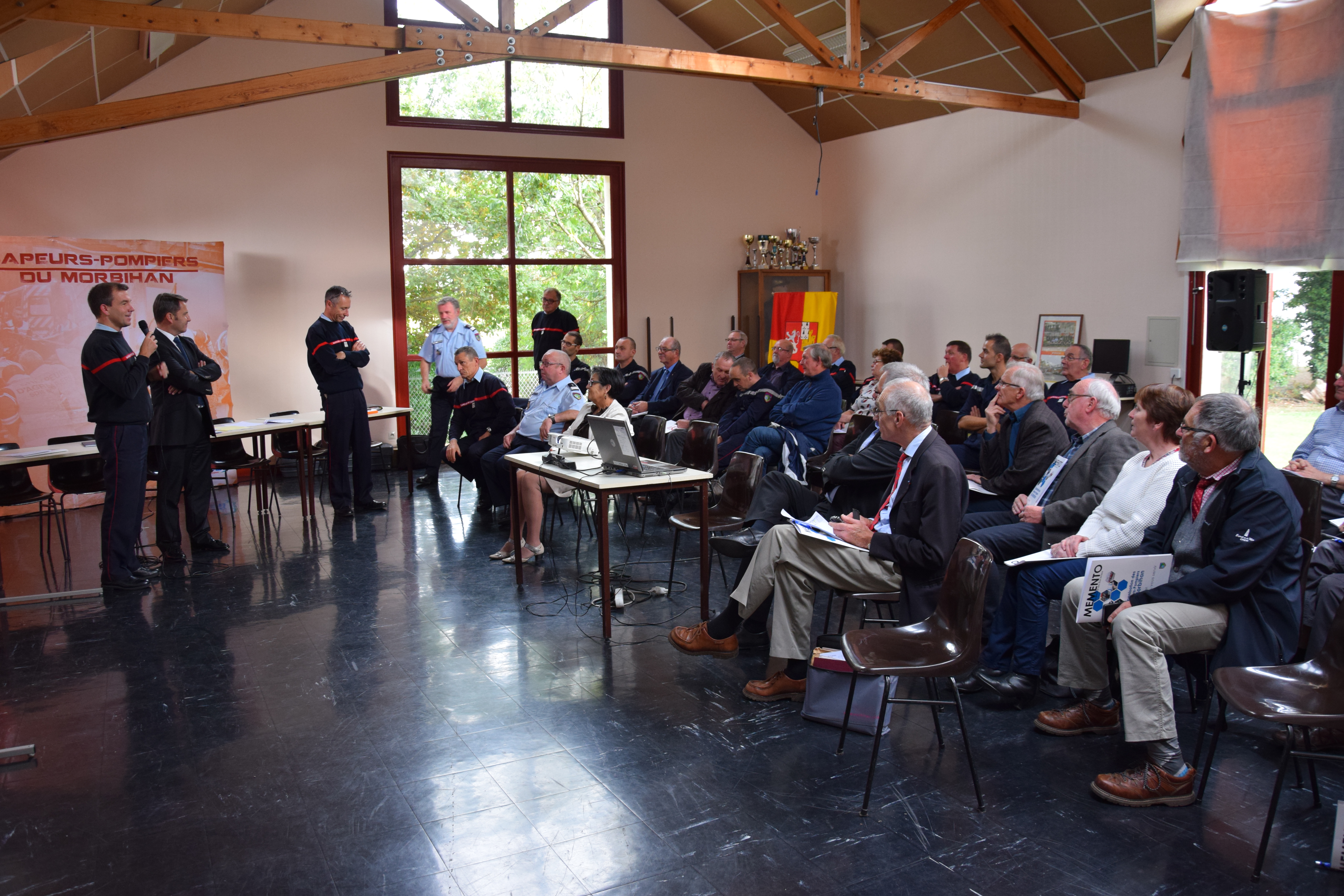 Autour du Président du Conseil d’Administration du SDIS, Gilles Dufeigneux, du directeur départemental, le Colonel Cyrille Berrod et des conseillers départementaux du canton de Ploërmel, Mme Guillas-Guerinel et M. Pichard, les maires et acteurs locaux ont pu échanger avec les chefs de centres et présidents d’amicale et référents des anciens sapeurs-pompiers qui assistaient à la réunion.