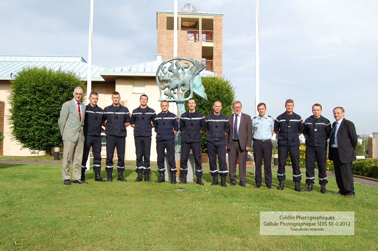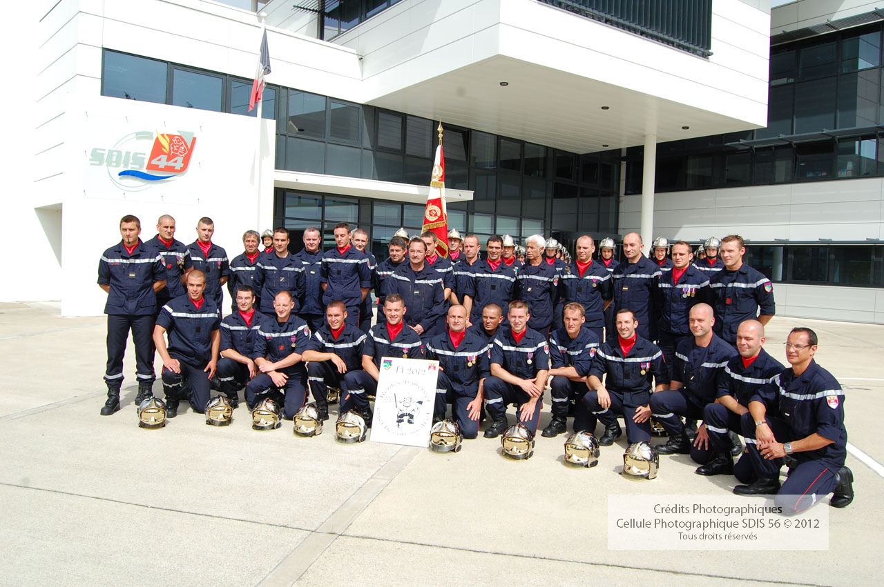 | La cérémonie a été présidé par le Colonel Berthelot, directeur du SDIS 44, en présence d’une délégation du Morbihan, les stagiaires et leurs parrains respectifs. Il leur a rappelé l’importance de la tache qui incombe au sapeurs-pompiers avant de leur souhaiter la réussite dans leur carrière. |