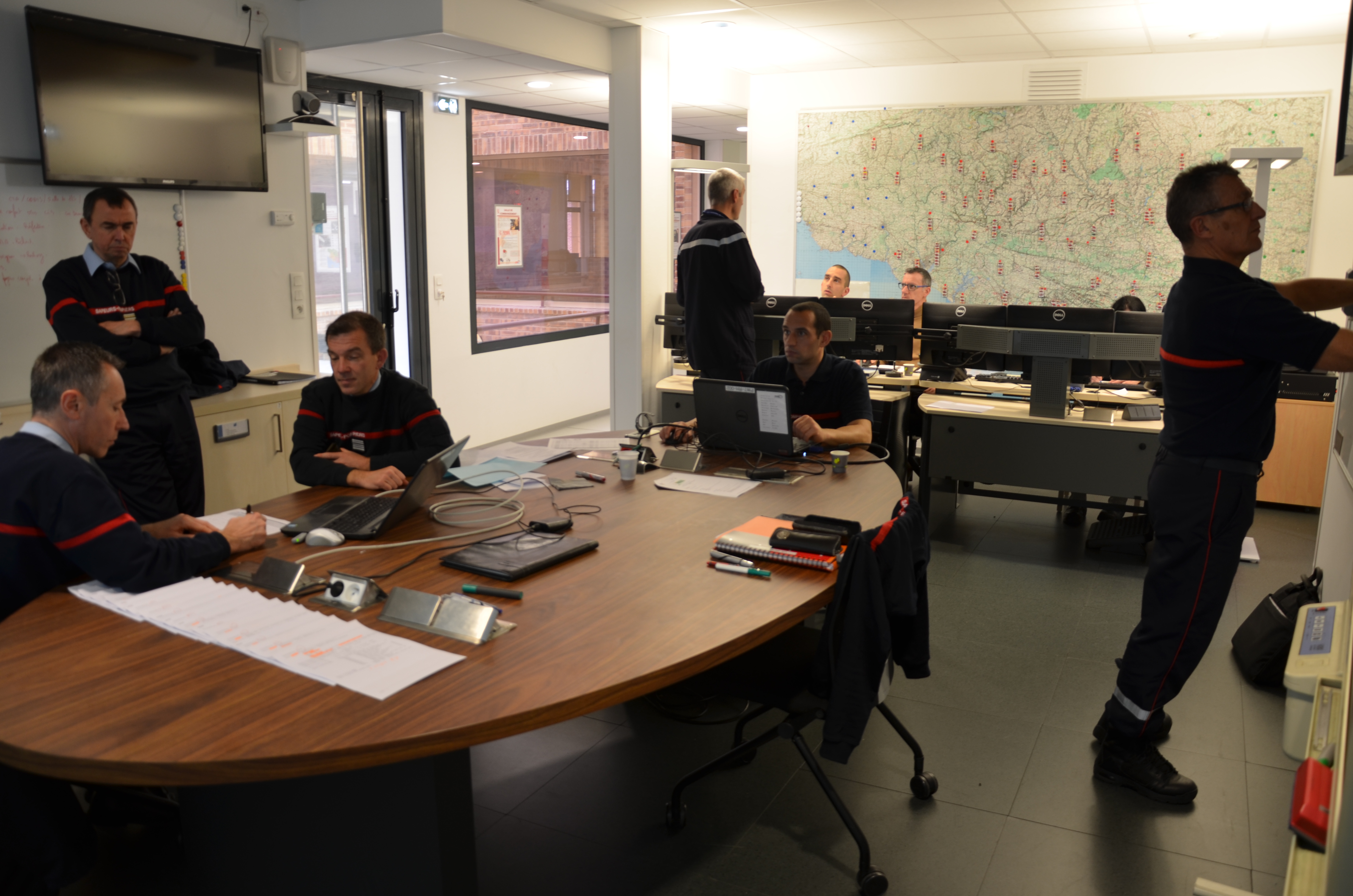 La salle de commandement et la salle de débordement pour la réception des appels ont été activées. On compte neuf blessés dont un gravement (accident de circulation).