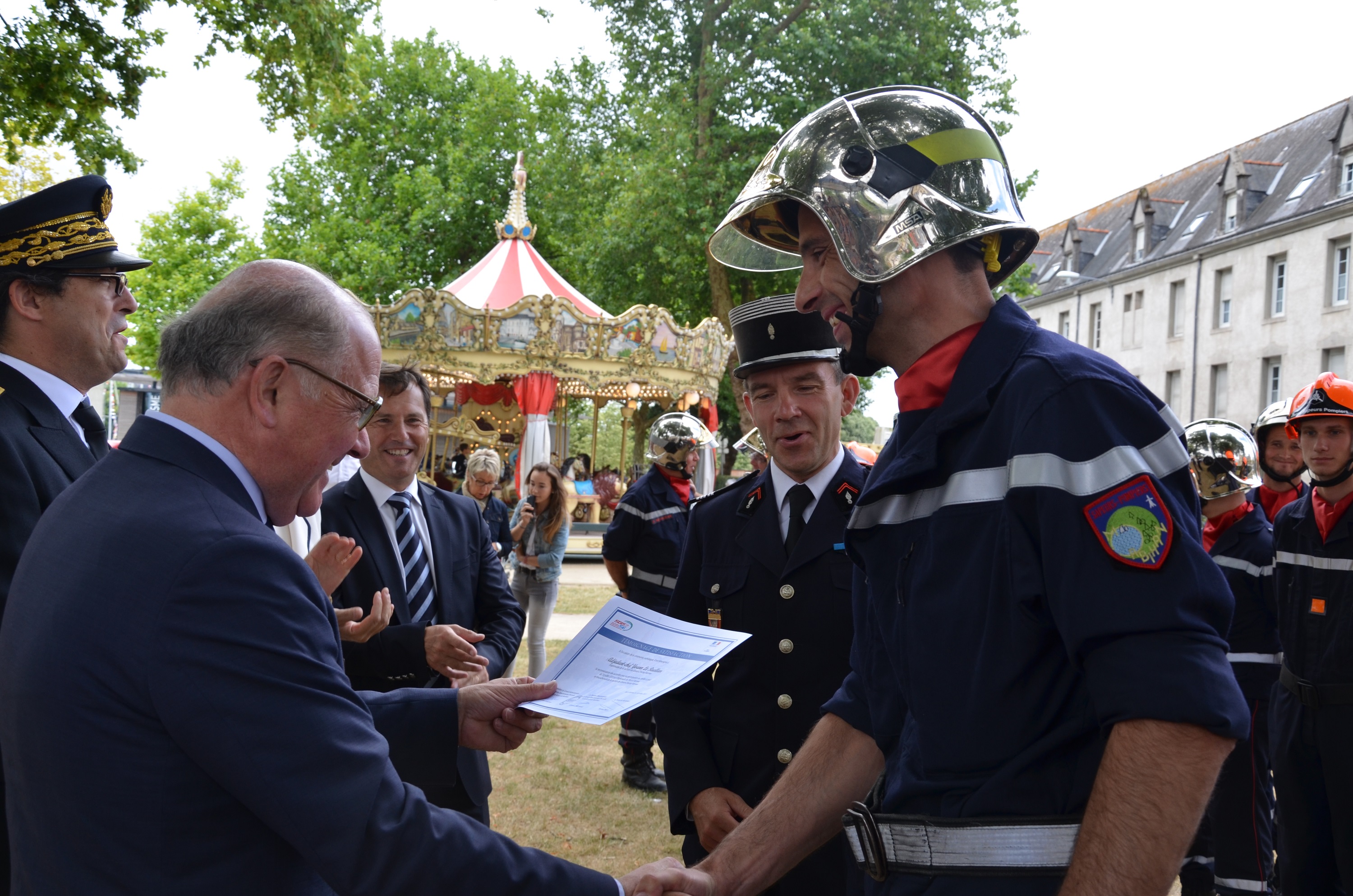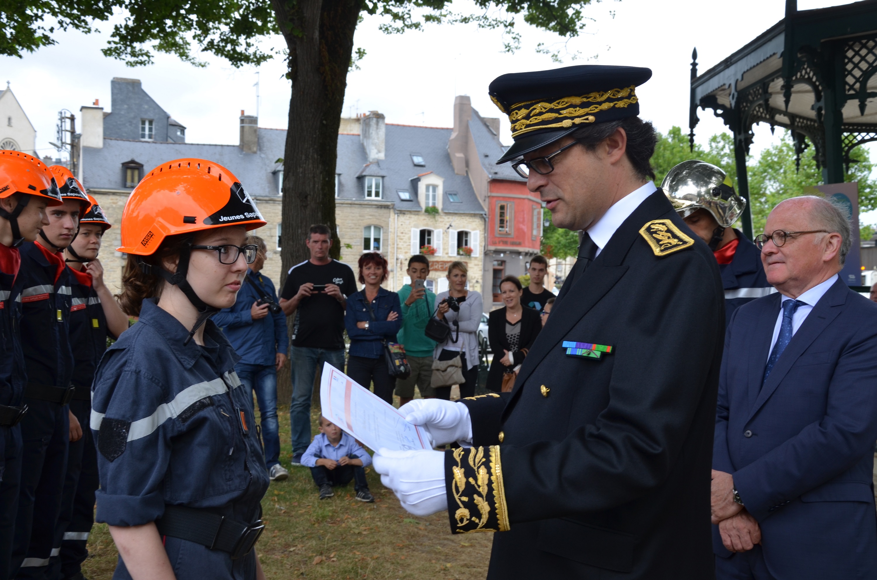 A l’issue de cette cérémonie, Thomas Degos, Préfet du Morbihan, a remis un témoignage de satisfaction à chaque jeune, aux côtés de François Goulard, Président du Conseil Départemental, de Françoise Favreau, Inspectrice d’Académie, de Gilles Dufeigneux, Président du CASDIS, de Christine Penhoët, 1ère Vice-Présidente du CASDIS et du colonel Cyrille Berrod, Directeur Départemental.