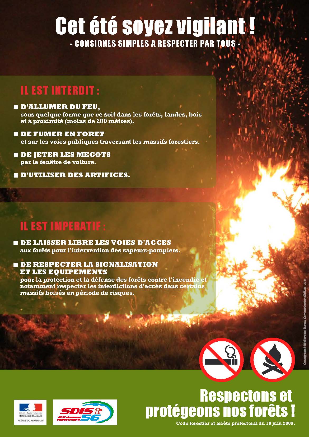 Compte tenu de cette situation, Thomas Degos, préfet du Morbihan, demande au public fréquentant les zones forestières d’être particulièrement vigilant :