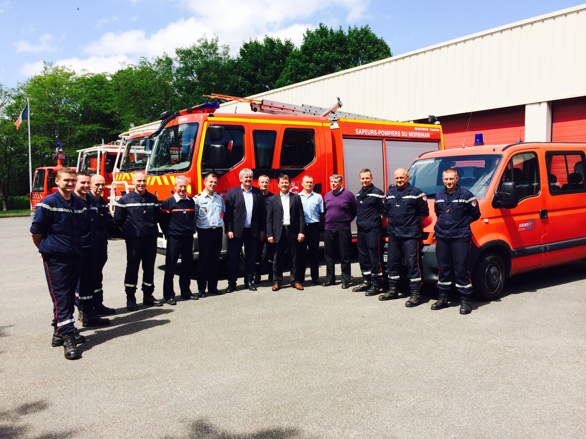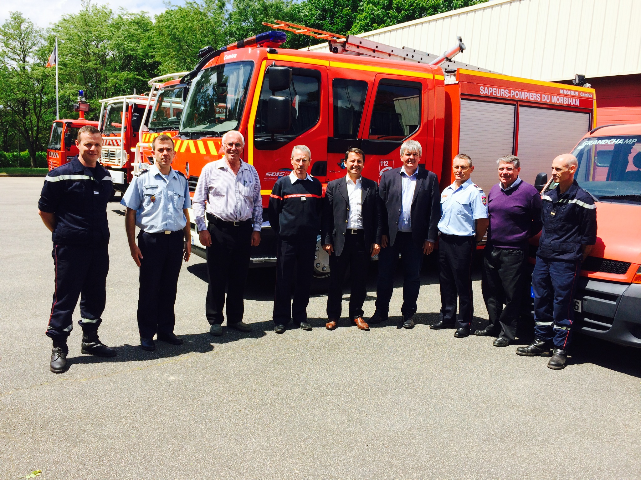 La délégation a été accueillie par le capitaine Gérard Mahé, chef de centre, en présence du maire de Grand-Champ, Yves Bleunven, et président du SIVU, Patrick Parisot.