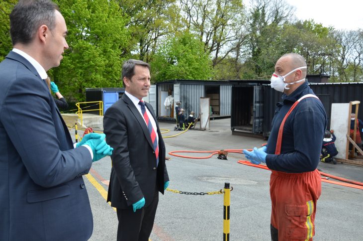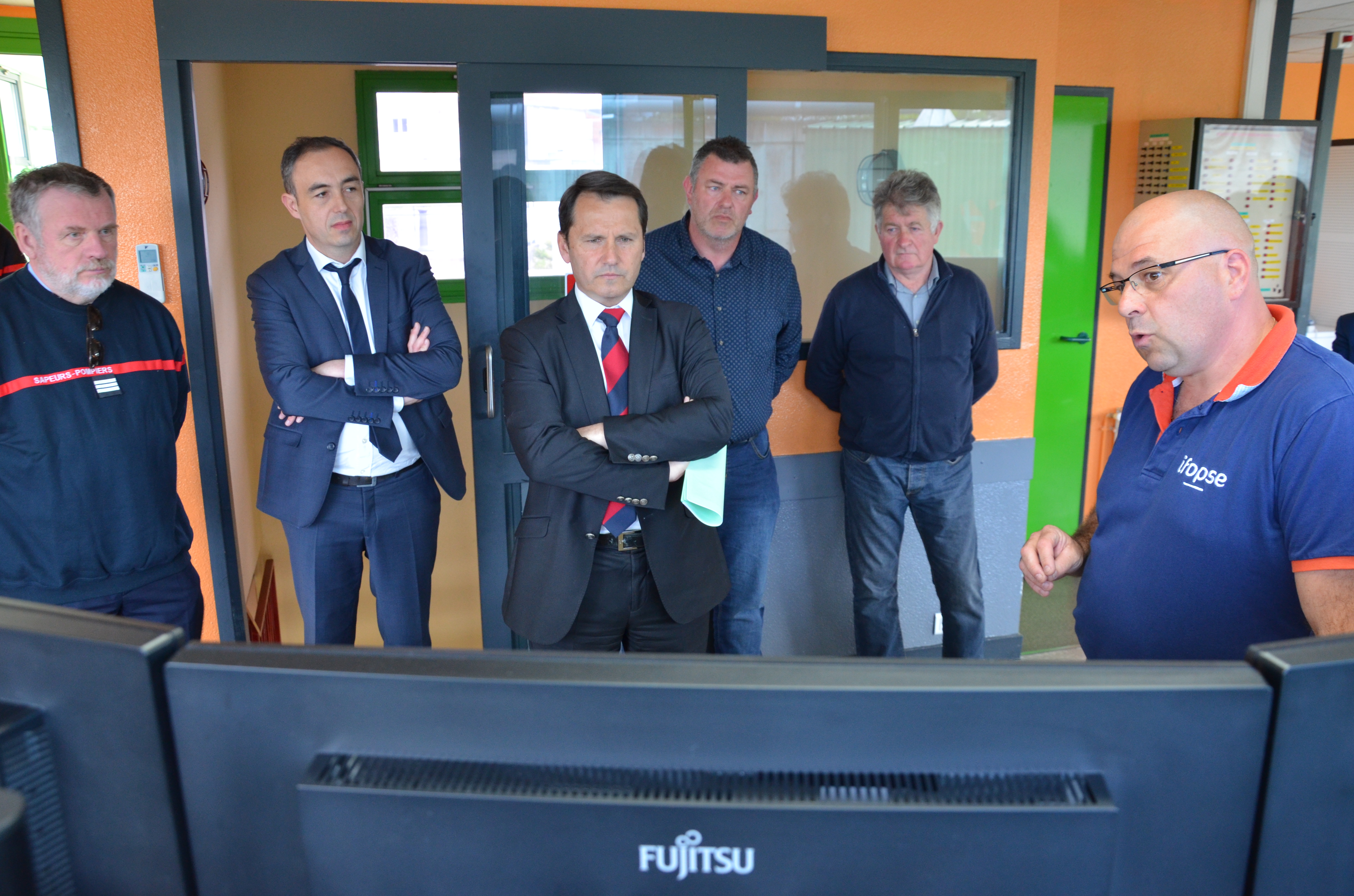Gilles Dufeigneux, Président du CASDIS, accompagné de Bruno Le Borgne, 1er vice-président de la communauté de communes « Arc Sud Bretagne », Gérard David, adjoint au maire de Nivillac, du capitaine Decombes, adjoint au chef de groupement de Vannes, du capitaine Bernard Guillo, référent mission volontariat et du capitaine Jean-Yves Gombaud, chef du centre de secours de La Roche-Bernard, s’est rendu sur le site de l’IFOPSE afin de souligner l’engagement de l’entreprise en faveur de l’emploi des sapeurs-pompiers volontaires.